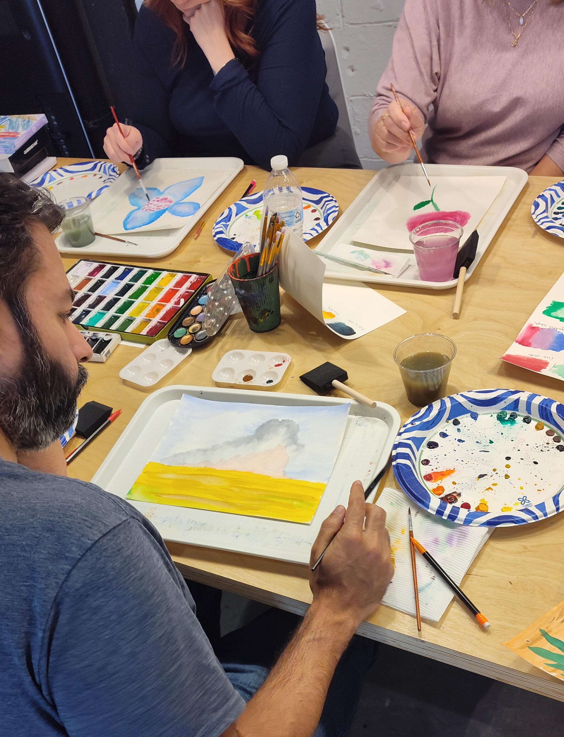 First, I will guide the class through learning the main 9 techniques of watercolor: Dry Brush, Wet on Wet, Wet on Dry, Flat Wash, Glazing, Pulling Color, Blooming, Graded Wash, and Lifting.Next, I will take the class through painting an abstract piece, incorporating all the techniques learned.I'll then show the class how to use the techniques to create a more realistic piece.Finally, for the last bit of class, everyone will have time to do paint on their own while I look on and continue to help with any questions.Supplies Needed for Each Person: